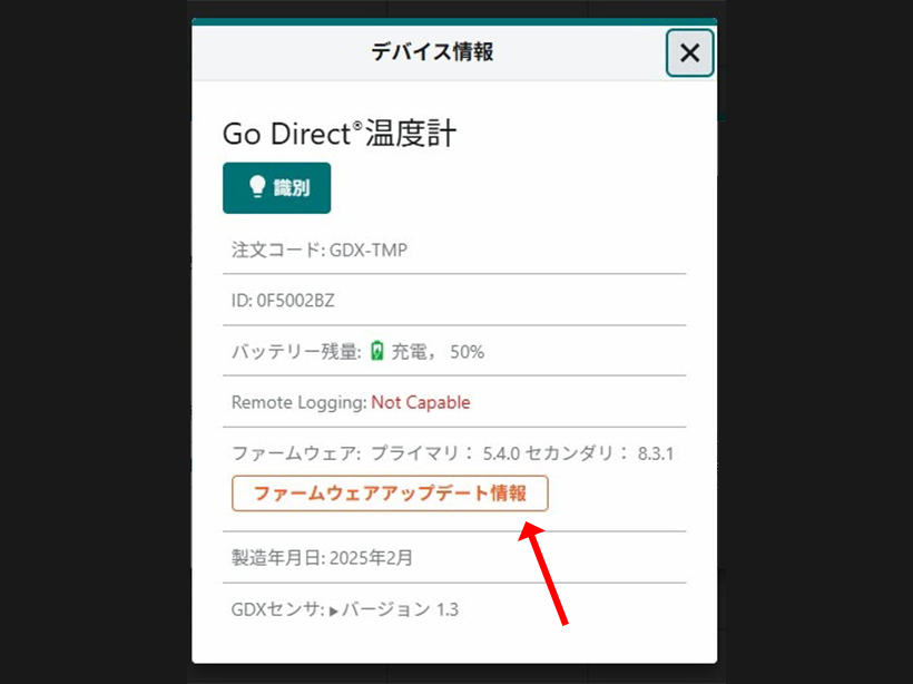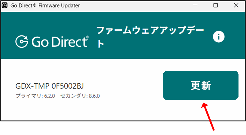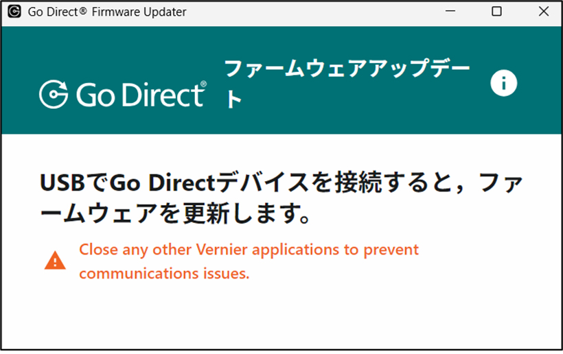 このアプリケーションは、Graphical Analysisアプリとは別に、Go Directデバイス本体のファームウェアの更新を管理するために使用されます。