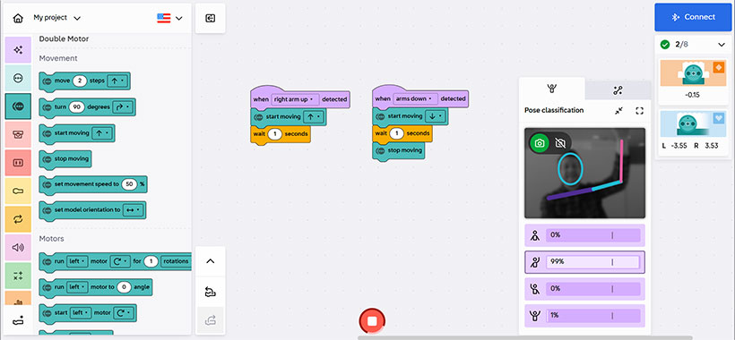 • 充実したAI機能: 画像認識やポーズ検知などの最新AI機能を、専門的なコードを書くことなく体験できます。