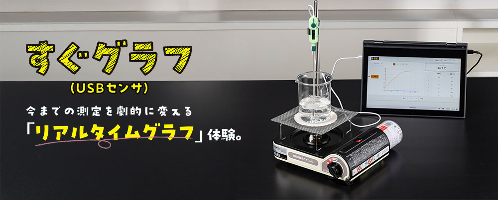 温度を測定するセンサです。専用Webアプリ「Sugu-T-WEB」をつかって時間的に変化する値をリアルタイムでグラフ化することができます。