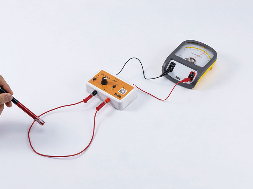 デジタルマルチメーターやセンサと組合わせると、電荷の移動や微小な電流の測定ができます。